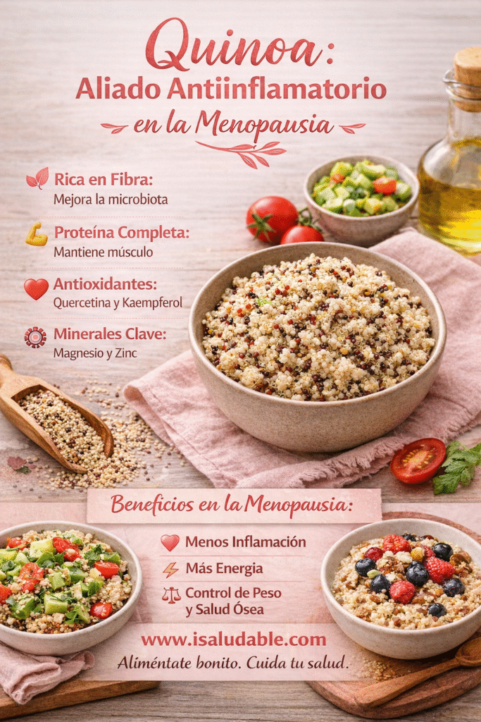 La menopausia es una etapa de cambios hormonales que puede aumentar la inflamación, generar fatiga, afectar el sueño y modificar el peso. Elegir alimentos antiinflamatorios es clave para sentirnos mejor y mantener nuestra energía y bienestar. La quinoa es un superalimento ideal para esta etapa de la vida.